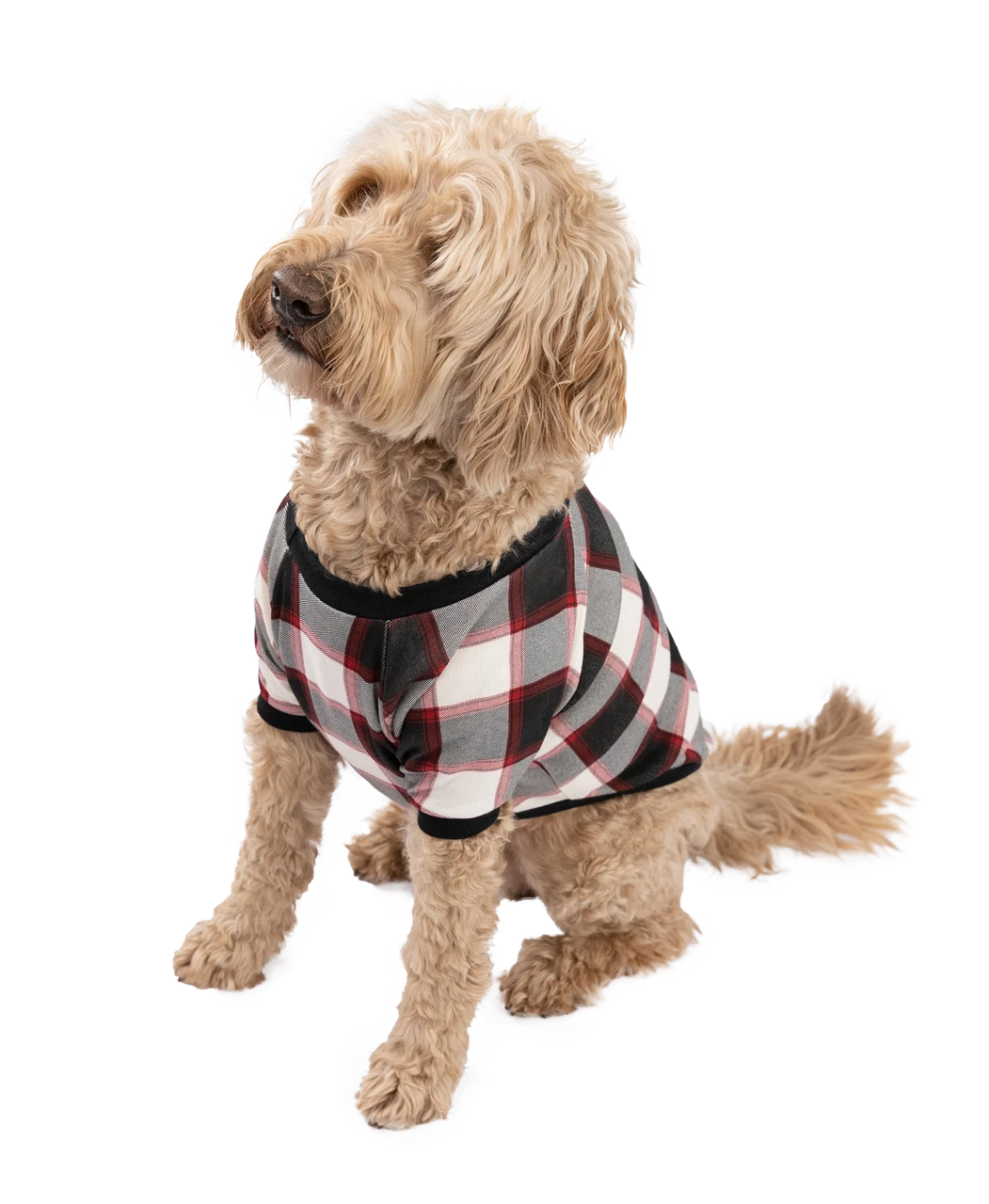Our Black Plaid dog shirt is perfect for any family photo that includes your furriest friend. This dog shirt matches perfectly with two different family matching sets making it great for all year use! Made with 100% combed cotton giving your dog comfort while making them even cuter! This dog shirt goes great with our Bear cub and Deer Christmas Family matching collection. Â