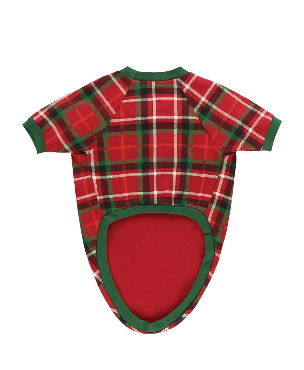Dress your furriest family member for the holiday season with our Chrsitmas Plaid Dog Shirt. It features the two classic CHrsitmas color of red and green in a comfy dog pajama shirt. Our Christmas Plaid dog shirt matches perfectly with two different family matching sets making it great for all year use! Made with 100% combed cotton giving your dog comfort while making them even cuter!Â