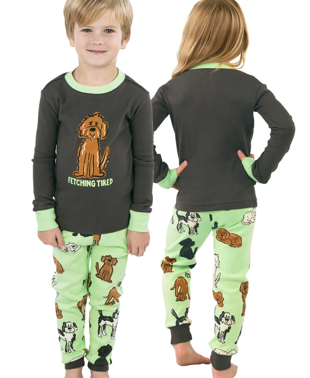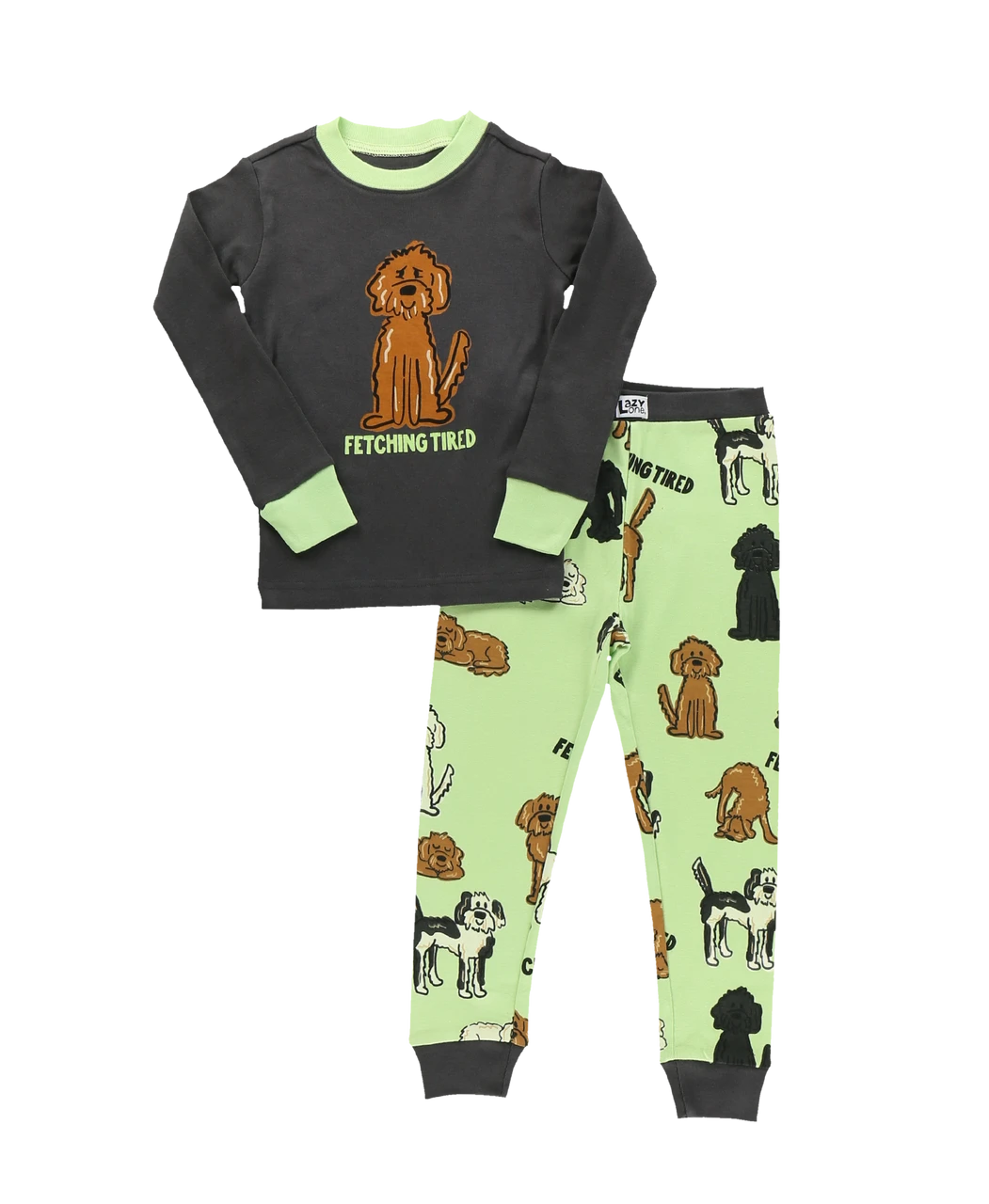 No matter how tired your little one is you can rest assure they will be comfortable in our Fetching Tired Kid’s PJ Set. Featuring a cute Labradoodle design in a comfy kid set. Our Fetching Tired Kids PJ Set is made with the highest quality combed cotton, these pajamas are a must have for any kid. When it is finally time for bed your little ones will be jumping for joy in their Fetching Tired pajamas.Â