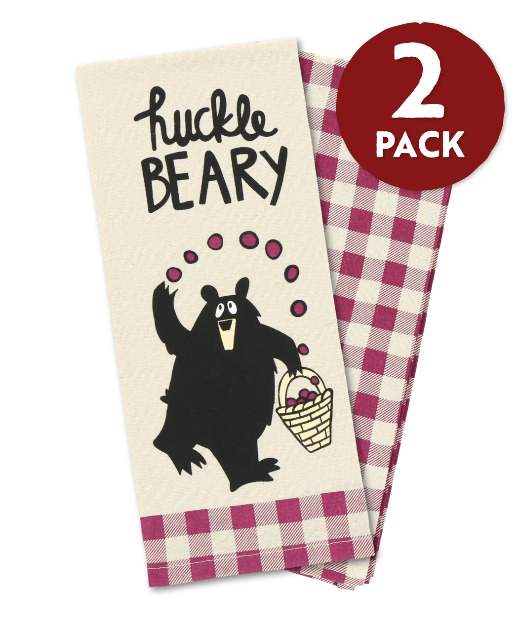 Add something sweet to your kitchen with our Huckle-Beary tea towel two pack. This two pack features our classic huckleberry design on one of the tea towels while the other has a matching purple plaid. This set will sure to add some fun to any cooking space. Our tea towels are made with flour sack woven fabric making them light weight and perfect for kitchen use.