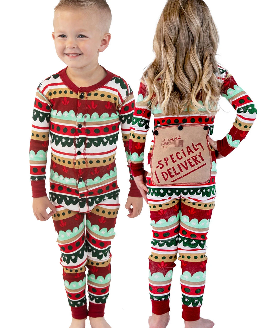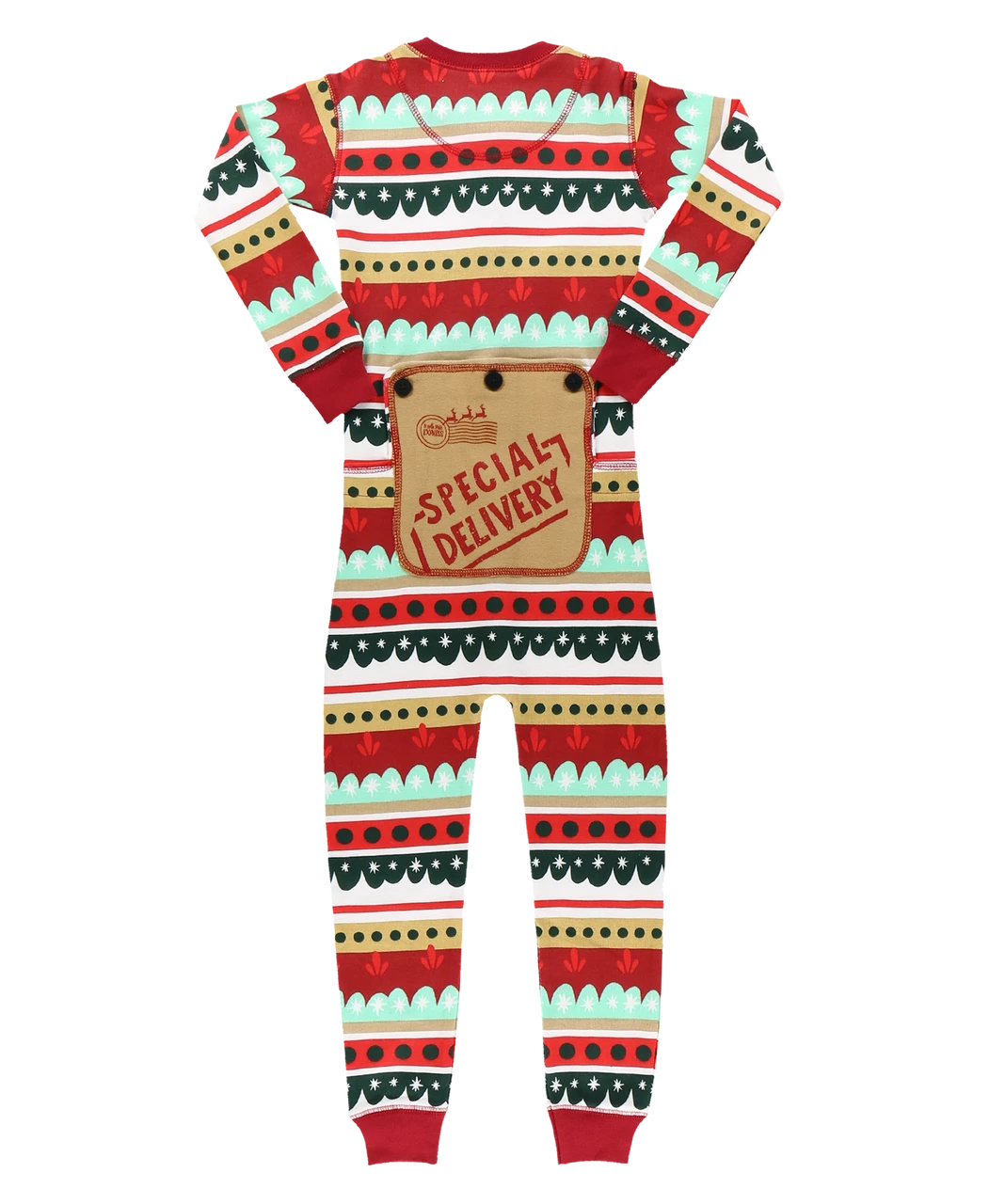 Put the perfect gift underneath the tree with for you little one! Our Special Delivery kids flapjack features a fun holiday fair isle design with a fun decorative trap door. Flapjacks are a dream to dream in, hugging the body in toasty comfort from top to bottom. The decorative trap door is all sewn up for safety. Get Christmas pajamas for the whole family with our Special Delivery matching family pajamas.