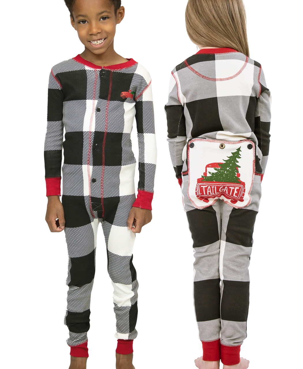 With its fun black & white plaid design and its fun classic red truck on the butt, your kids will never want to take our Tailgate flapjack off. Flapjacks are a dream to dream in, hugging the body in toasty comfort from top to bottom. Tailgate Kid Onesie Flapjacks are great for Family Matching Pajama sets. The decorative trap door is all sewn up for safety.