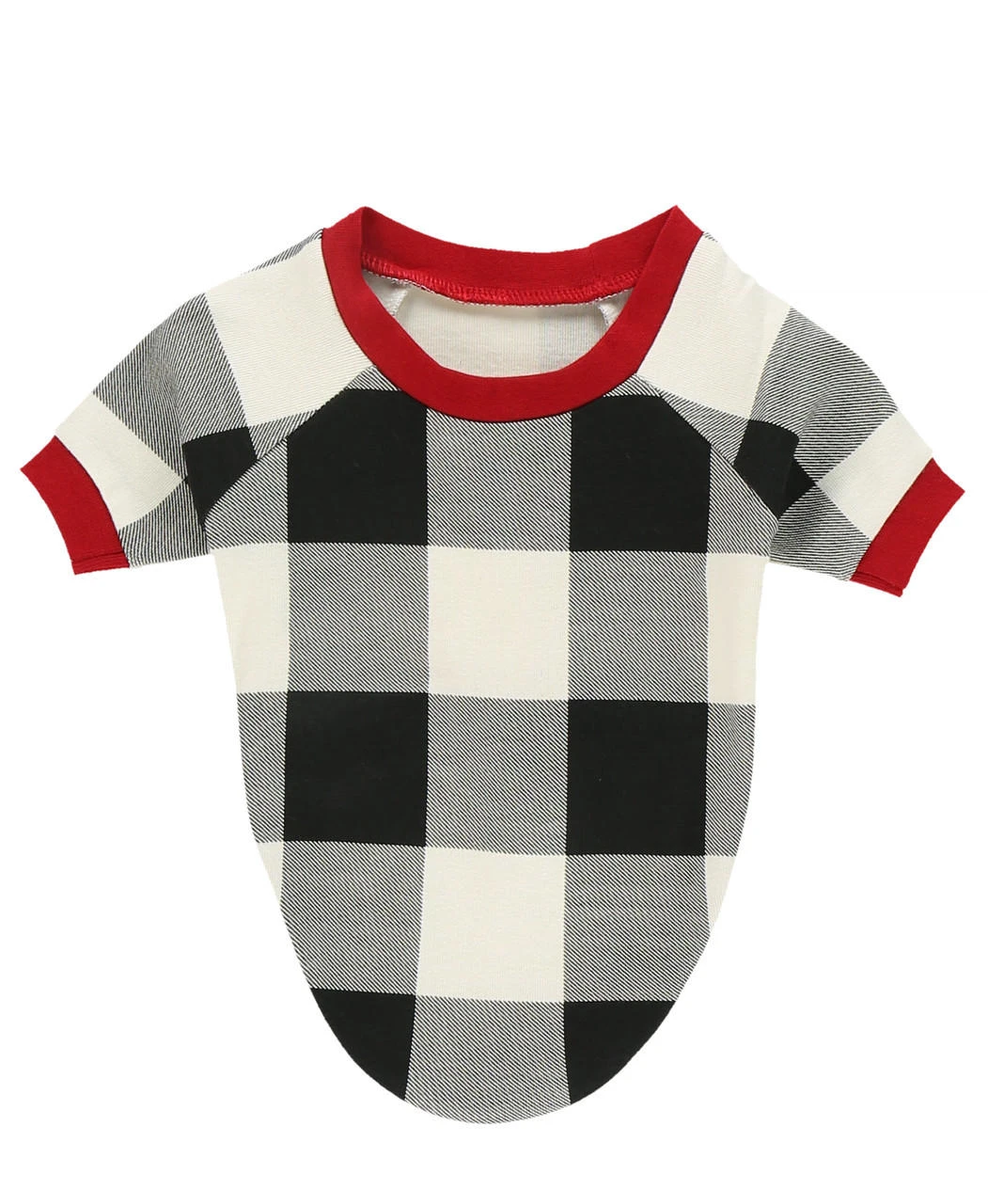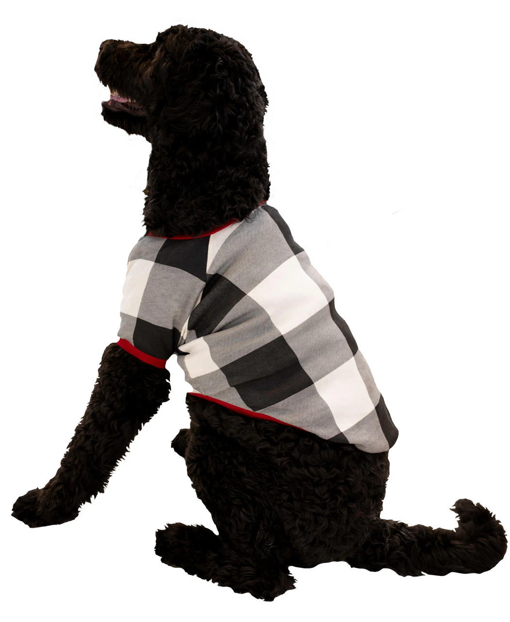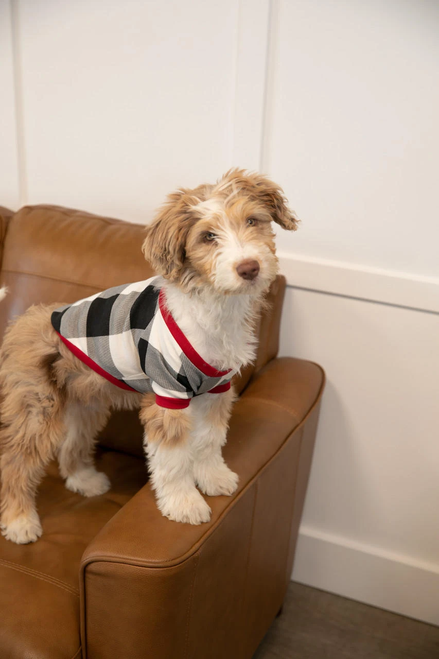 Our classic truck plaid design now comes in an adorable dog shirt. With it’s black and white plaid design our Truck plaid dog shirt matches perfectly with two different family matching sets making it great for all year use! Made with 100% combed cotton giving your dog comfort while making them even cuter! This dog shirt goes great with our Tailgate family flapjack and Take the Long Way Home Family matching collection.
